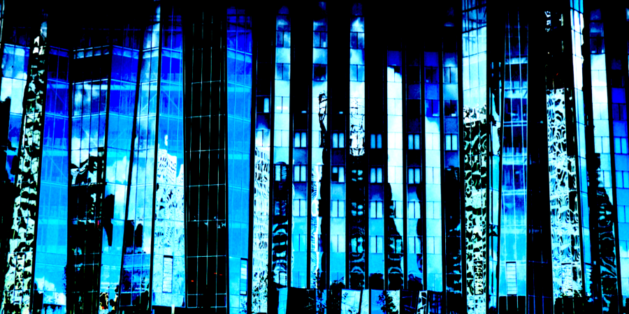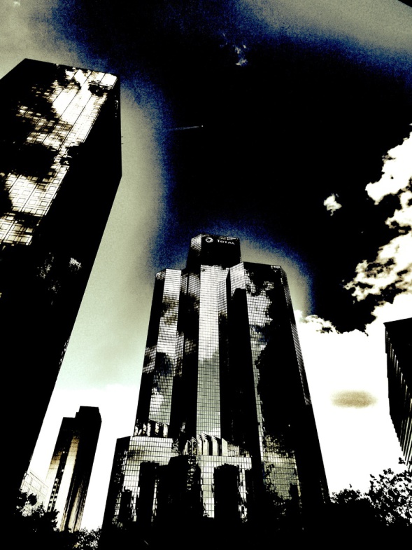 La rigueur mais aussi l'humanité du quartier de La Défense donnent envie de s'amuser avec ces façades rectilignes.